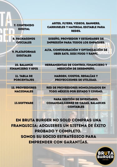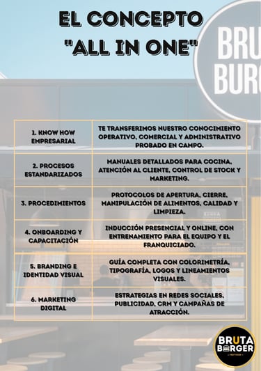 En Bruta Burger no solo compras una franquicia; adquieres un sistema de éxito probado y completo.